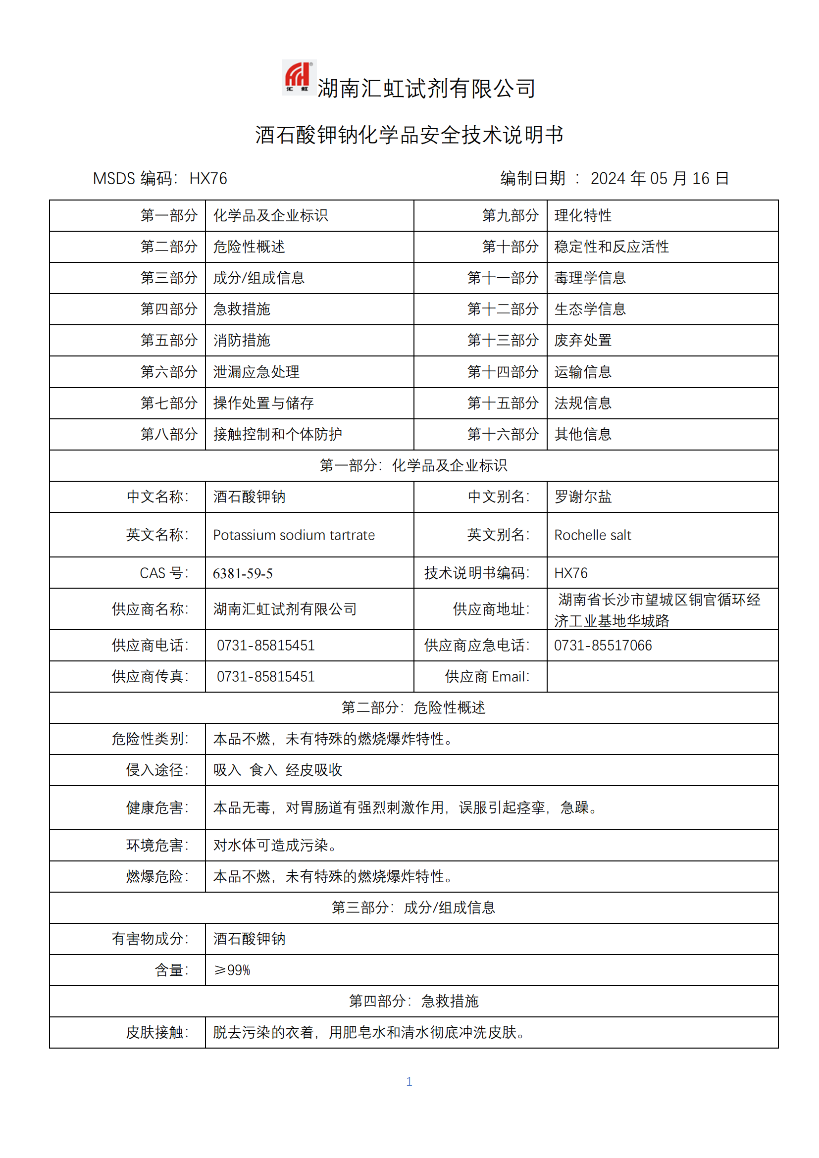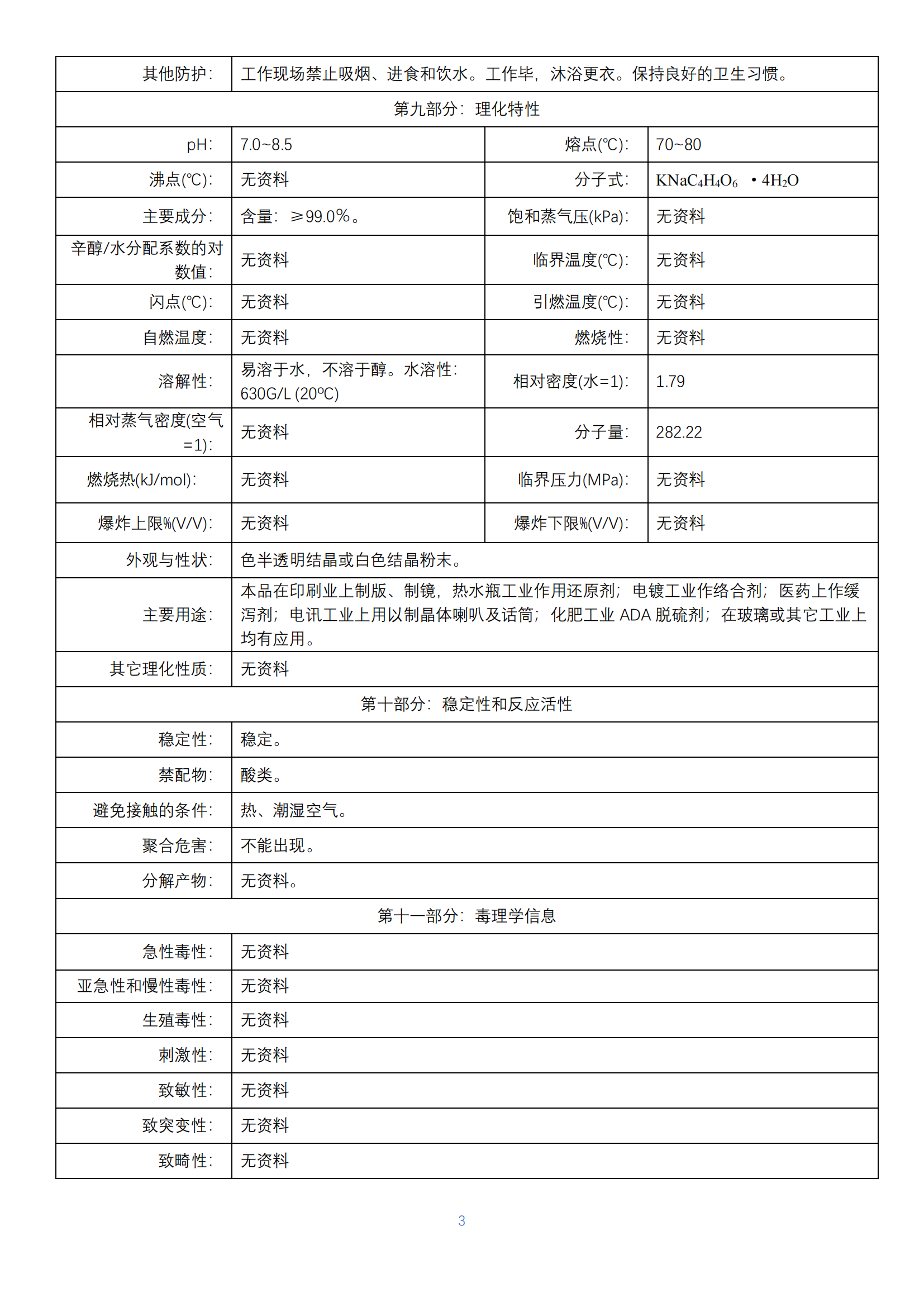 酒石酸鉀鈉化學品安全技術(shù)說明書