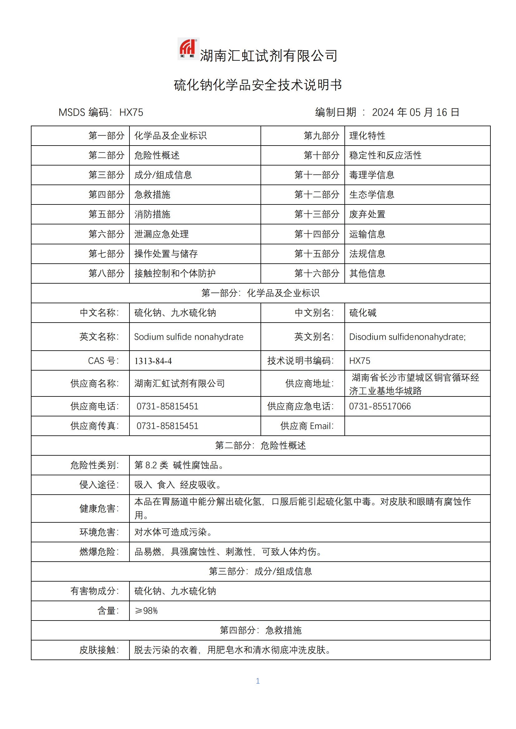 硫化鈉化學(xué)品安全技術(shù)說(shuō)明書(shū)
